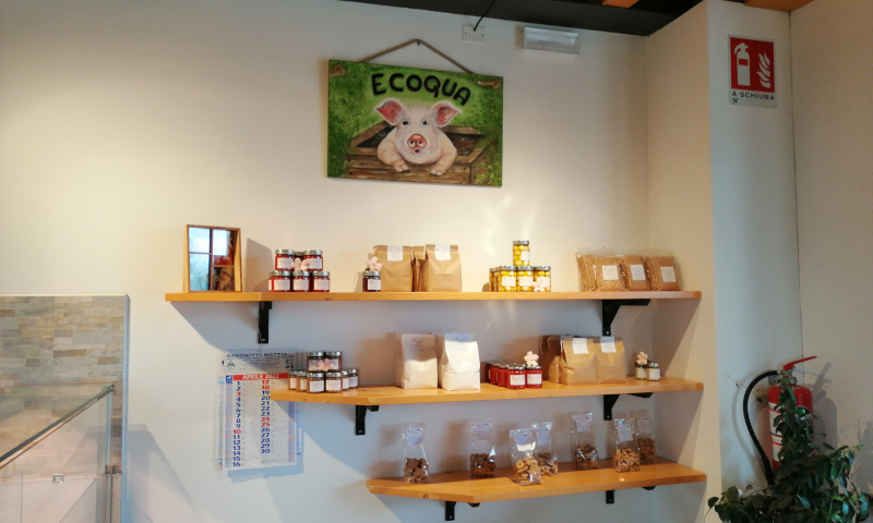 Tutti gli animali vengono allevati seguendo i più rigidi canoni del benessere animale, rispettando a pieno le loro esigenze sia alimentari che etologiche, non forzando la loro crescita e sfruttando il più possibile le risorse derivate dall’azienda. Oltre alla vendita di frutta, verdura, carne e salumi vengono proposti anche preparati e composte di frutta e verdure e come ultima novità viene effettuata anche la vendita di pane fatto con i grani antichi coltivati direttamente in azienda. Ecoqua ogni settimana collabora contro gli sprechi alimentari donando alla parrocchia e alla Caritas le verdure invendute.