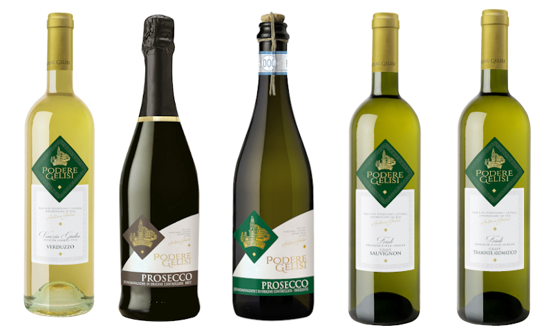 Vini bianchi: Prosecco Spumante Brut, Prosecco Frizzante, Chardonnay, Friulano, Pinot Grigio, Traminer Aromatico, Sauvignon, Verduzzo, Moscato Giallo Frizzante