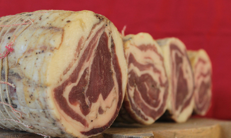 L’azienda produce ortaggi, vino, frutta, carni fresche di maiale e animali da cortile e gustosi salumi che rappresentano il punto di forza dell’azienda.